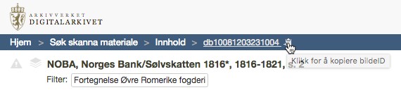 Feltet for kildereferanse tillater kun permanente id'er for transkriberte poster og for skanna bilder i Digitalarkivet.